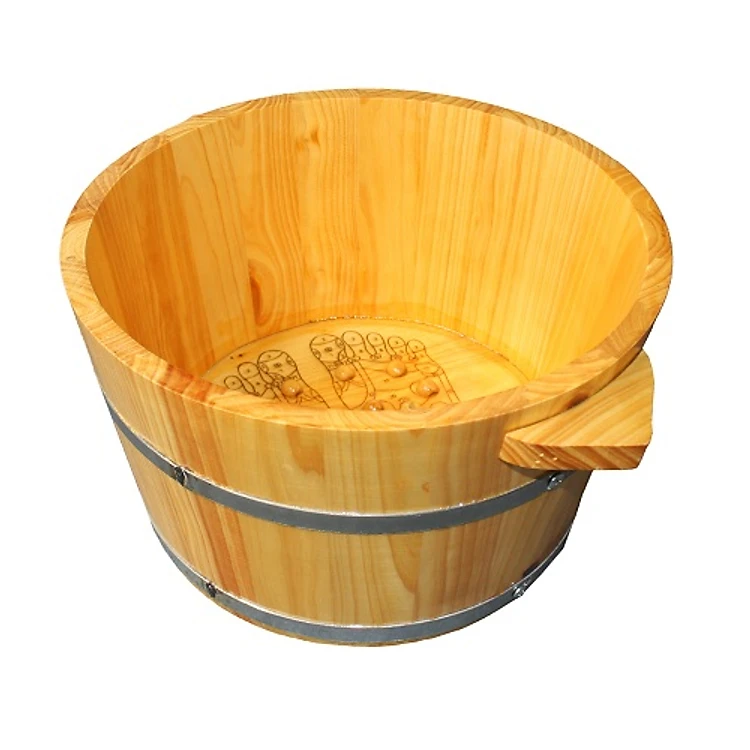 VỚI MẪU CHẬU NGÂM CHÂN GỖ THÔNG - HÌNH BÀN CHÂN CÓ HẠT MASSAGE với thiết kế về cơ bản giống với các chậu gỗ ngâm chân khác nhưng được khắc thêm hình bàn chân và gắn các hạt gỗ massage tại các vị trí huyệt đạo của bàn chân nhằm tối ưu tác dụng