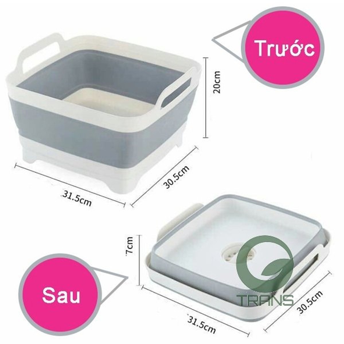 Kích thước của chậu gấp gọn vừa phải để gọn trong lòng bồn rửa rau, rửa bát