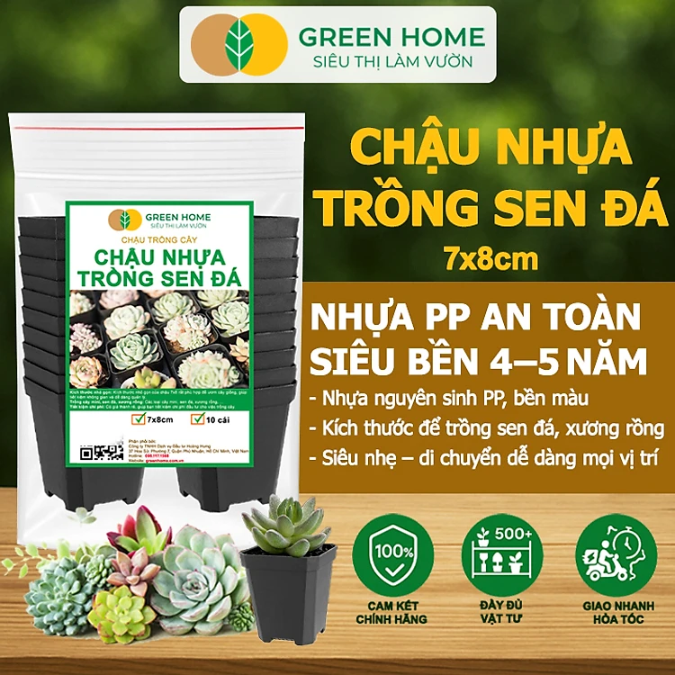 Bộ 10 Chậu Nhựa Trồng Sen Đá Greenhome, 7x8cm, Siêu Bền, Đẹp, Đa Năng, Trồng Mọi Loại Cây, Tiết Kiệm Không Gian