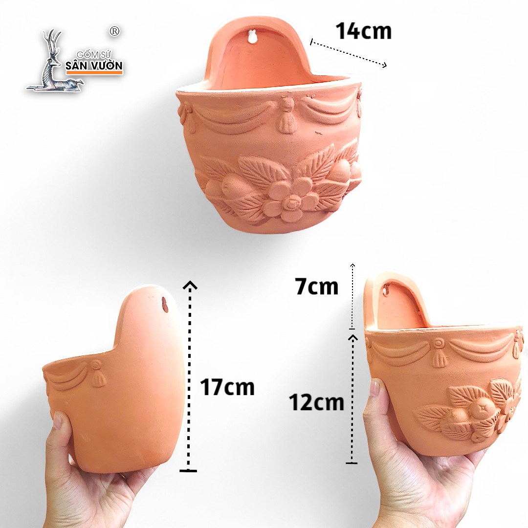 Chậu Ốp Tường Đất Nung Tròn Dáng Trứng Hoa | Trang Trí Ban Công Treo Tường | Rustic Balcony Decor | 14 ×17cm | Gốm Sứ Sân Vườn