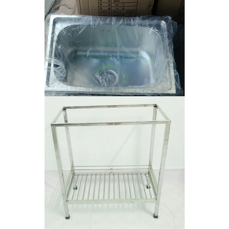 CHẬU RỬA 1HỘC INOX CÓ CHÂN CAO CẤP KT : 42X37X80 DxRxC