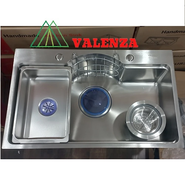 - Chậu rửa phụ bằng chất liệu inox304 là một cải tiến để đáp ứng đầy đủ nhu cầu sử dụng của khách hàng. Nếu ngại chậu hố to tốn nhiều nước hoặc không linh động khi cần sử dụng nhiều ngăn cùng lúc, thì chậu rửa bát đúc 1 hố size to 7848 dáng khuyết của Valenza có thêm một chậu phụ bằng inox304 đẻ vừa lọt trong lòng chậu rửa, dùng tiện lợi khi cần, vừa vệ sinh vừa linh động mà không tốn không gian.