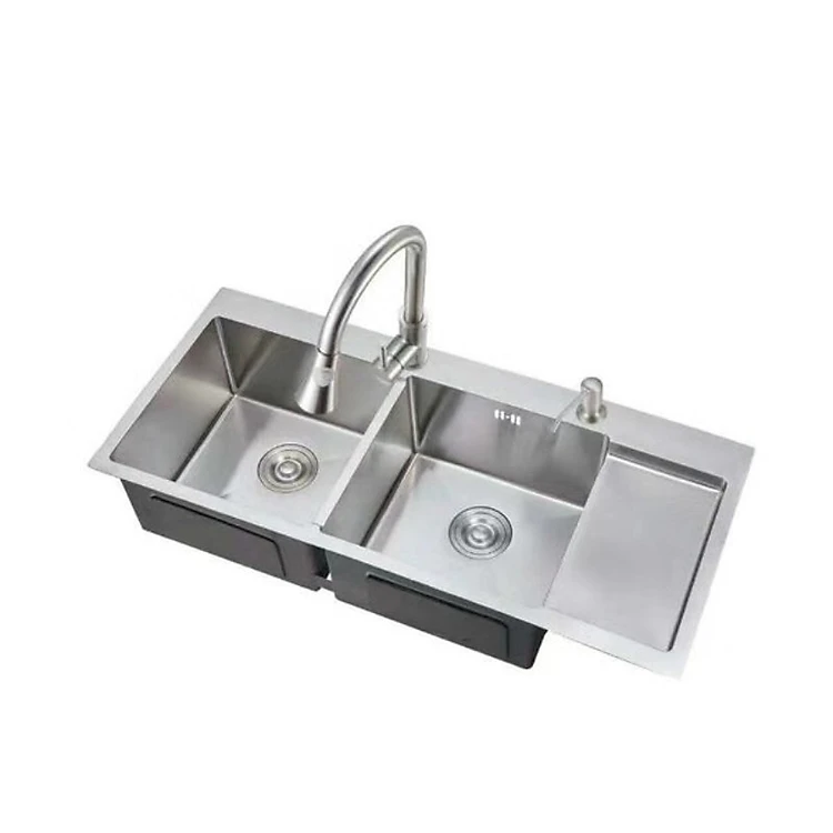 Chậu rửa bát đúc 2 hố + bàn 10048