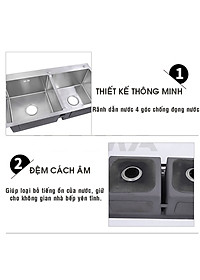 Chậu rửa bát inox 304 Pimisi đúc cao cấp 2 hố cân - kích thước 7843-8245 cm đầy đủ xi phông loại ống to - rỗ đựng đồ, dùng để rửa chén bát gắn được cả âm bàn đá | Hàng chính hãng