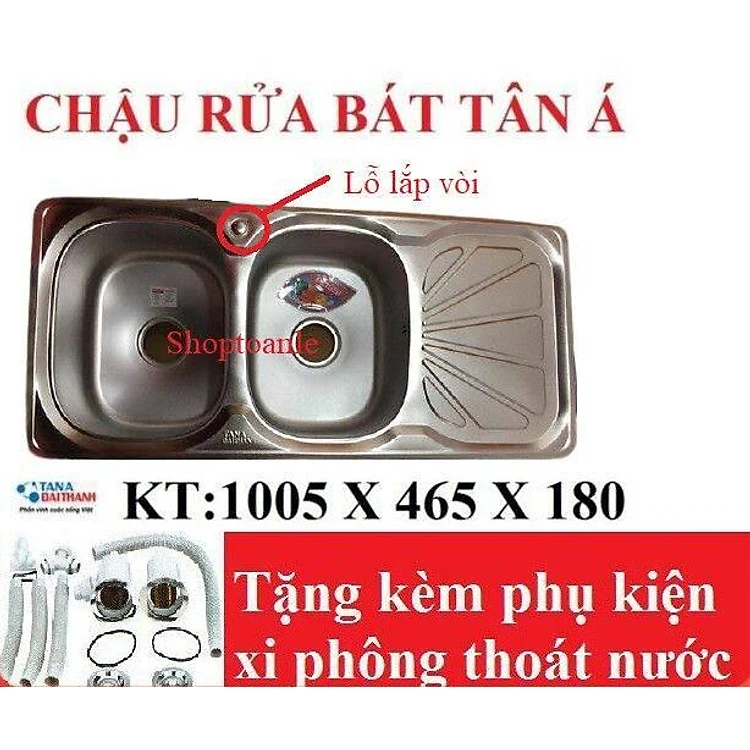 Chậu rửa bát Inox Tân Á xuất khẩu 2 ngăn (có bàn phụ) - đã đủ phụ kiện thoát nước