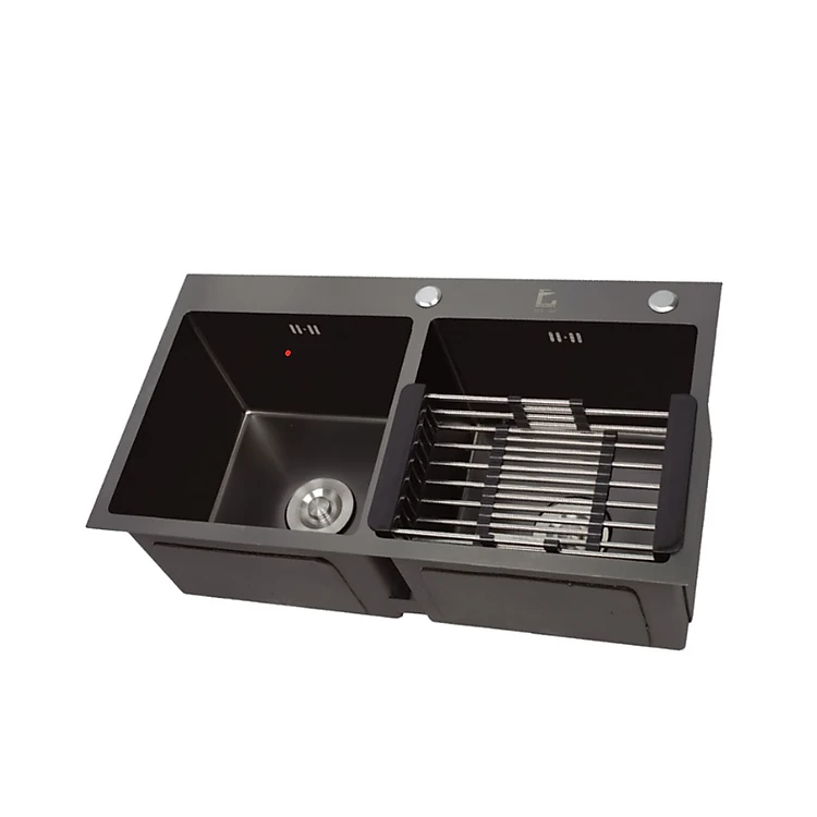 Chậu rửa chén bát 2 hố cân inox 304 phủ nano Juno sofa Teady 820 x 450 x 230 mm CRBCT-8202C