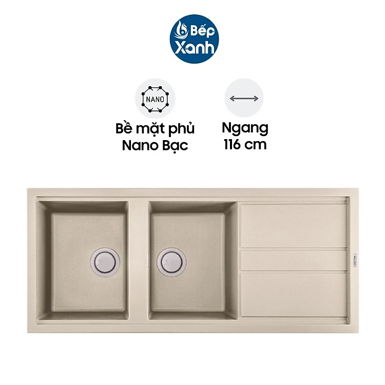 Chậu Malloca K-50062 có 2 hộc rửa rộng rãi, bề mặt màu kem sáng bóng dễ dàng lau chùi và vệ sinh. Với kích thước rộng bề ngang 116cm, bề dọc 51cm, cộng thêm 2 ngăn rửa có độ sâu 21.7cm hợp lý giúp người dùng thoải mái sử dụng để rửa thực phẩm, chén đĩa, số lượng từ ít đến nhiều vô cùng tiện lợi. Với thiết kế chậu rộng rãi thế này, khi kết hợp với các mẫu vòi đá Malloca sẽ mang đến sự đồng bộ và đẹp mắt hơn cho căn bếp nhà bạn.