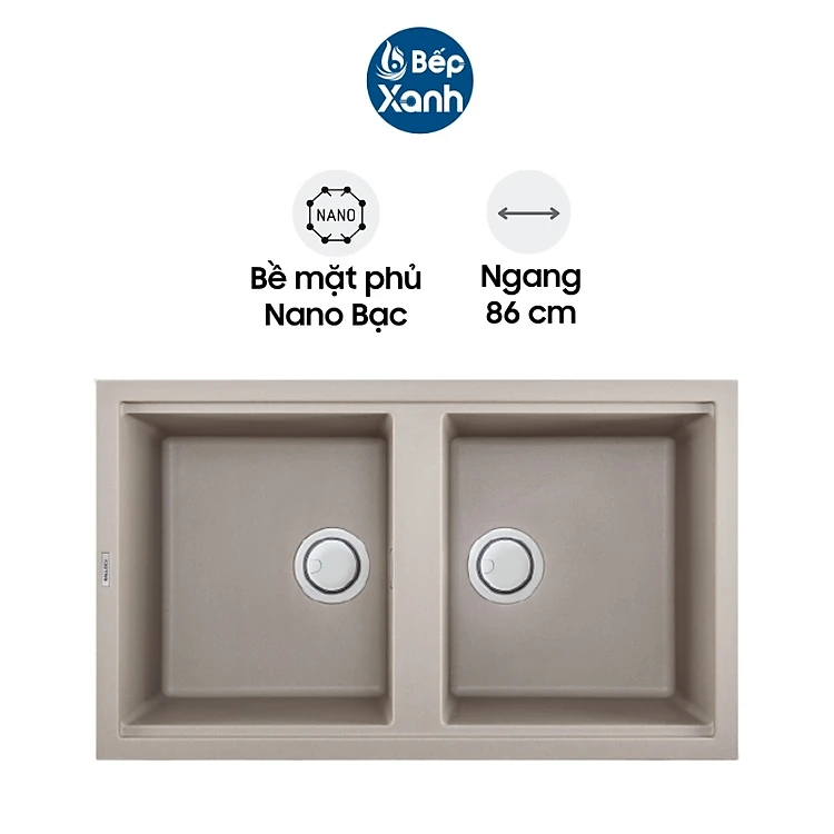 Chậu rửa chén đá Malloca Tortora K-45043 thiết kế 2 ngăn rửa bằng nhau, kiểu dáng hiện đại và đẹp mắt. Chậu hoàn thiện từ chất liệu đá Granite tự nhiên, bề mặt nhẵn mịn, không bám bẩn, dễ lau chùi và chống trầy xước tốt. Nhờ đó, sản phẩm được nhiều người dùng chọn mua cho gia đình mình.