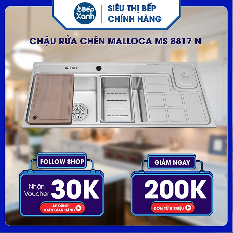 Malloca MS 8817 là chậu rửa chén có cánh sở hữu thiết kế sang trọng, hiện đại. Các tính năng được trang bị thông minh mang đến tính ứng dụng cao cho mọi gia đình.