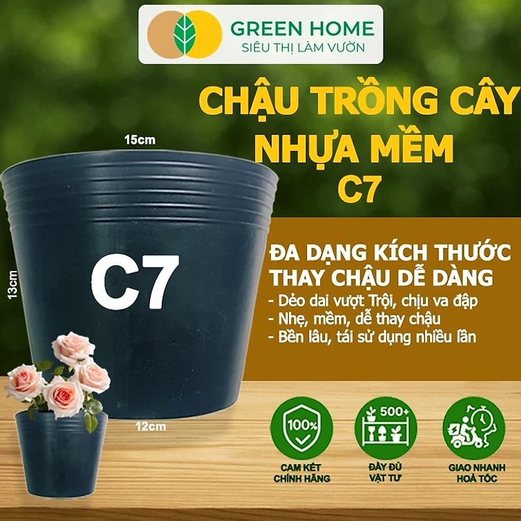 Chậu Trồng Cây Greenhome, nhiều kích thước, Nhựa Mềm, Dẻo, Nhẹ, Trồng Cây, Bầu Ươm Cây Giống, Độ Bền Đến 2 Năm