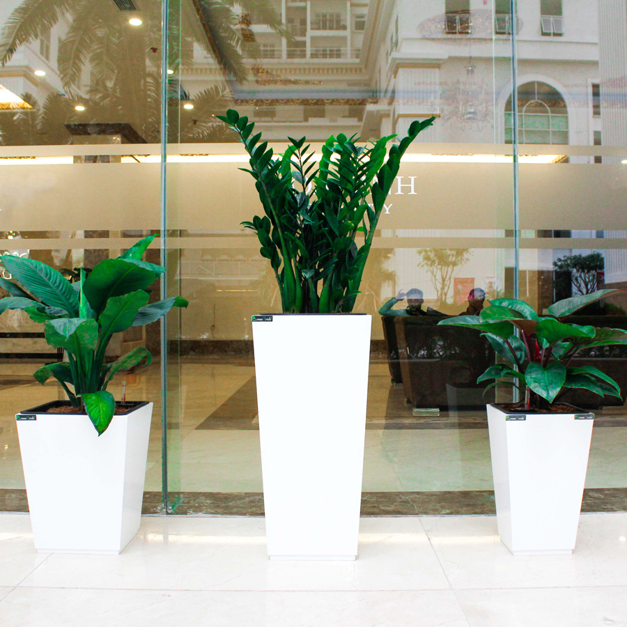 Chất liệu: Nhựa cao cấp, an toàn cho người sử dụng và thân thiện với môi trường. Chậu hoa bằng nhựa được làm từ chất liệu nhựa PP bền đẹp, khó bị oxy hóa trong điều kiện thường, sử dụng được trong thời gian dài và không gây độc hại tới môi trường. Chất liệu này còn dễ lau rửa, giúp người dùng tiết kiệm thời gian vệ sinh chậu.