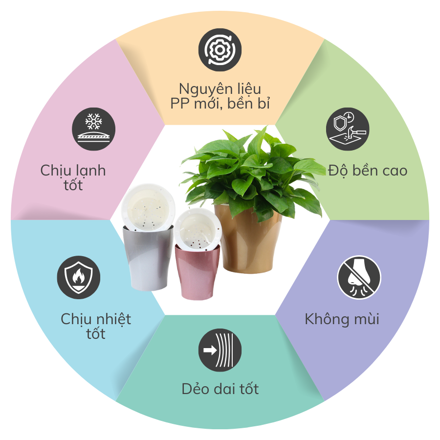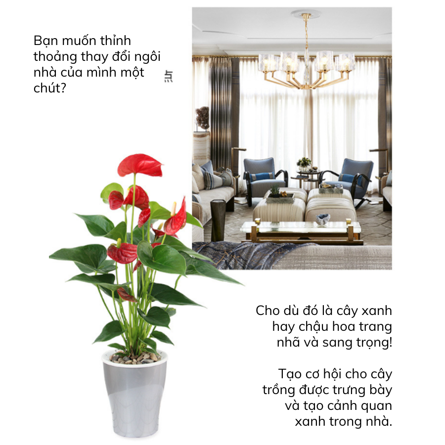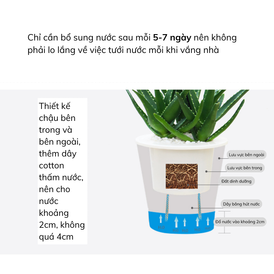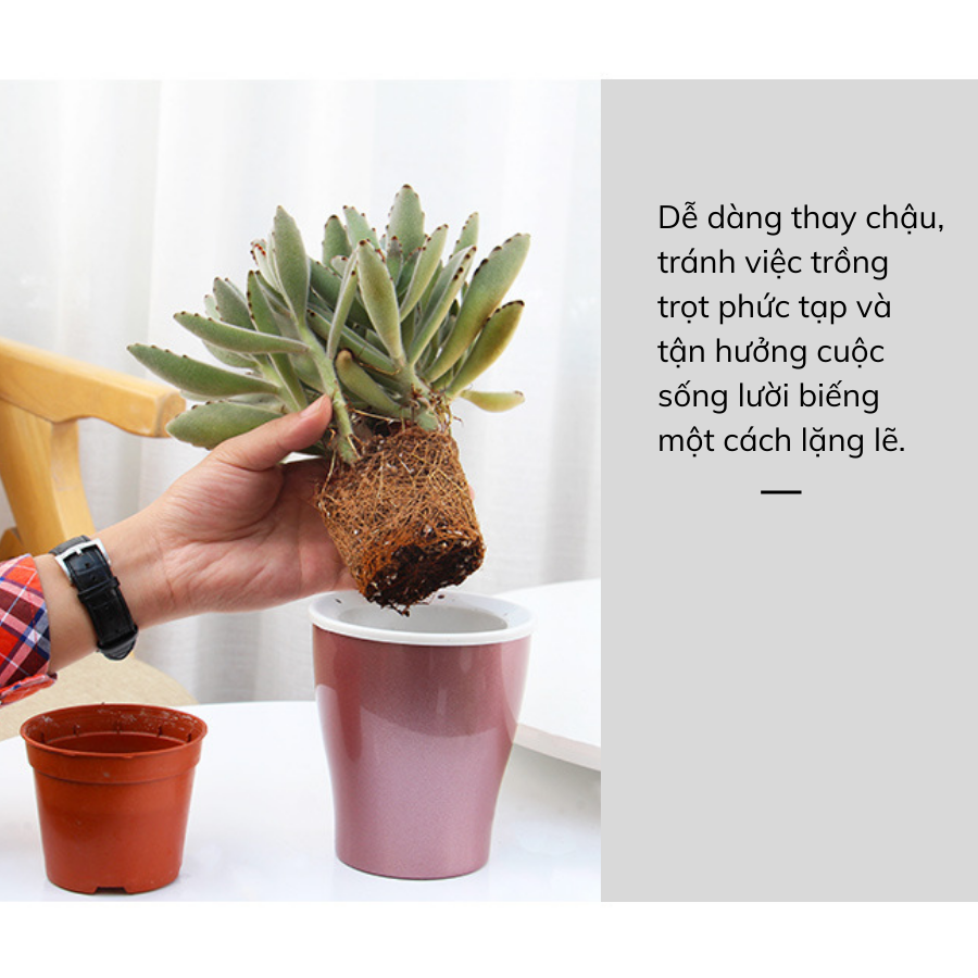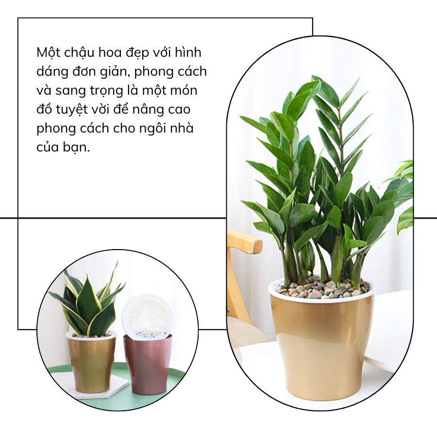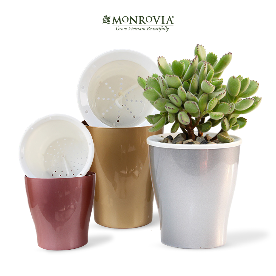 Chậu tự tưới để bàn W09 MONROVIA dành cho hoa, cây cảnh, decor, trang trí bàn làm việc, văn phòng