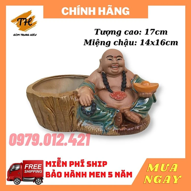 Chậu tượng Phật Di Lặc ngồi gốm Bát Tràng trồng cây bonsai tiểu cảnh đẹp