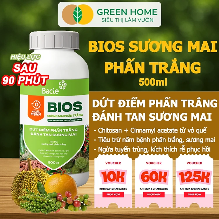 Chế Phẩm Sinh Học Bacte Bios Sương Mai Phấn Trắng, Green Home, Chai 500ml, Từ Thảo Mộc, Hiệu Lực Nhanh Mạnh