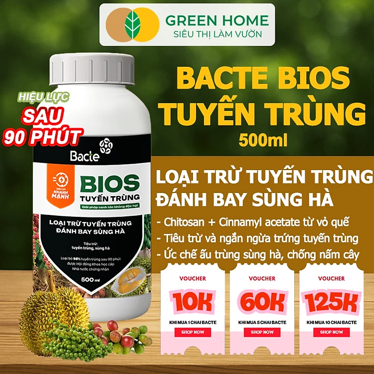 Chế Phẩm Sinh Học Bacte Bios Tuyến Trùng, Green Home, Chai 500ml, Từ Thảo Mộc, Hiệu Lực Nhanh Mạnh