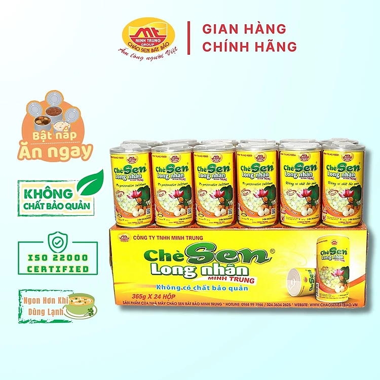 Chè Sen Long Nhãn Minh Trung 365g Không Chất Bảo Quản - Thùng 24 Lon Chè Sen Long Nhãn 24