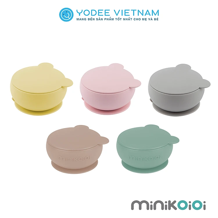 MinikOiOi Chén ăn kèm nắp đậy silicone cao cấp cho bé có đế hít chống trơn an toàn và tiện lợi
