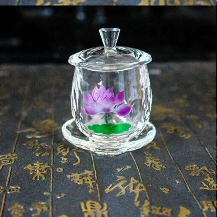 Chến thờ, ly nước cúng Phật hình bông sen pha lê cao cấp