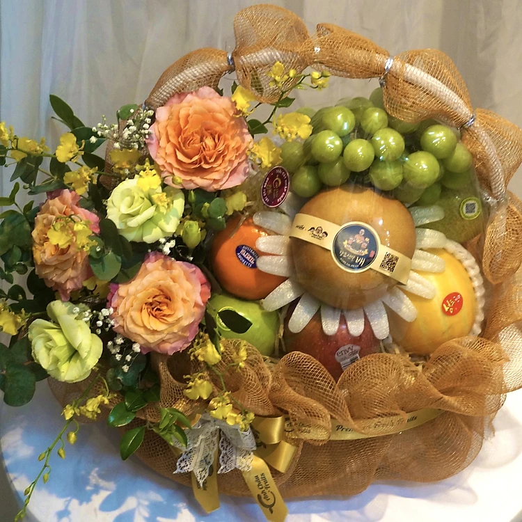 [GIAO NHANH HN - 1H - 0989.780.789] Giỏ Quà Trái Cây Kèm Hoa Tươi - AC159
