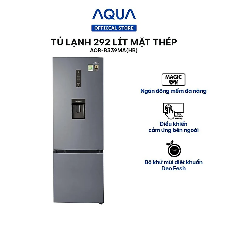 Tủ lạnh ngăn đông dưới Aqua 292 Lít AQR-B339MA(HB) - Hàng chính hãng - Chỉ giao HCM, Hà Nội, Đà Nẵng, Hải Phòng, Bình Dương, Đồng Nai, Cần Thơ