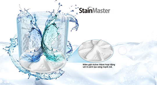 Mâm giặt Active Wave với thiết kế 8 cánh tạo các cột nước xoáy trong lồng giặt, liên tục đảo quần áo lên xuống cho hiệu ứng chà xát mạnh mẽ để đánh bật các vết bẩn cứng đầu. * Hình ảnh chỉ mang tính chất minh họa.
