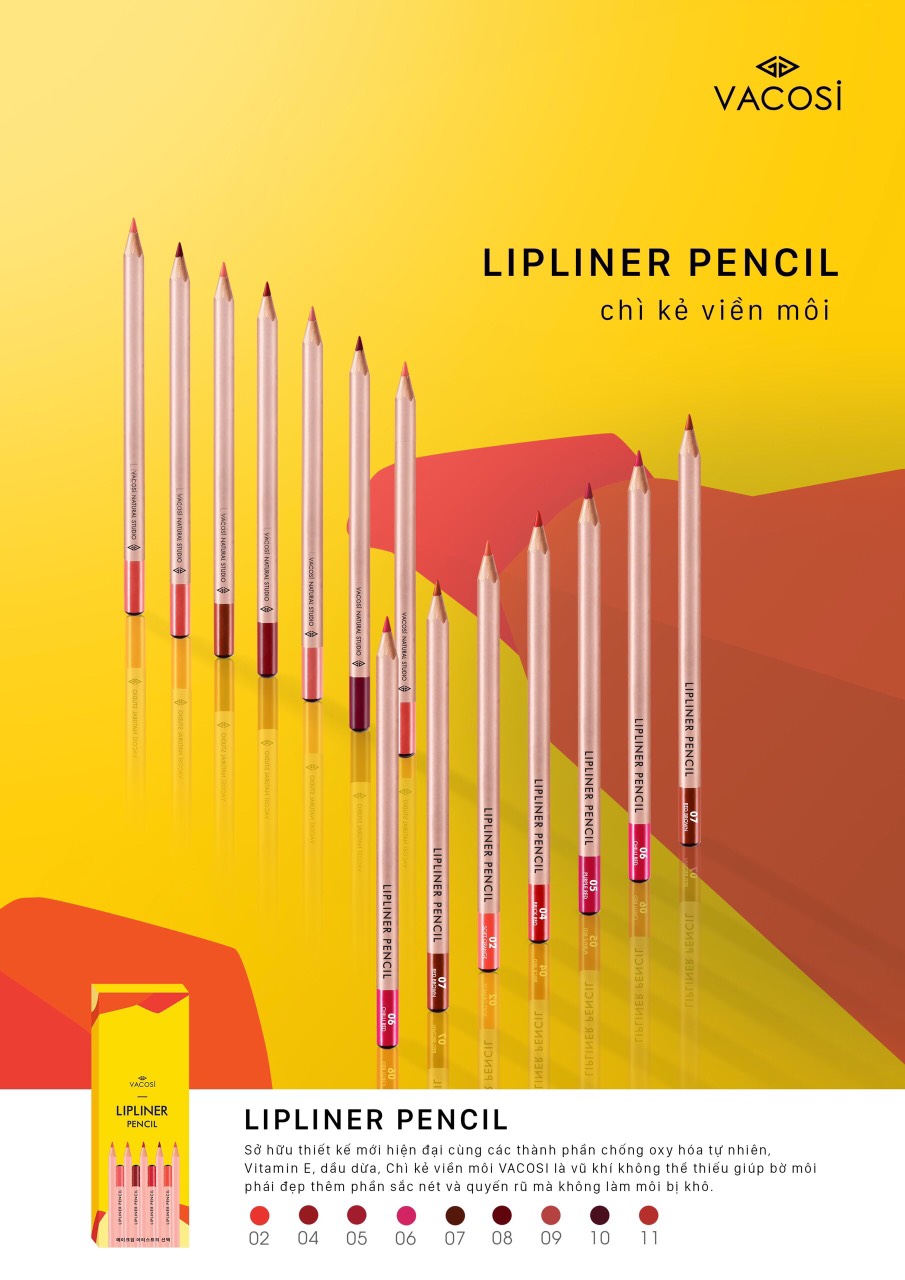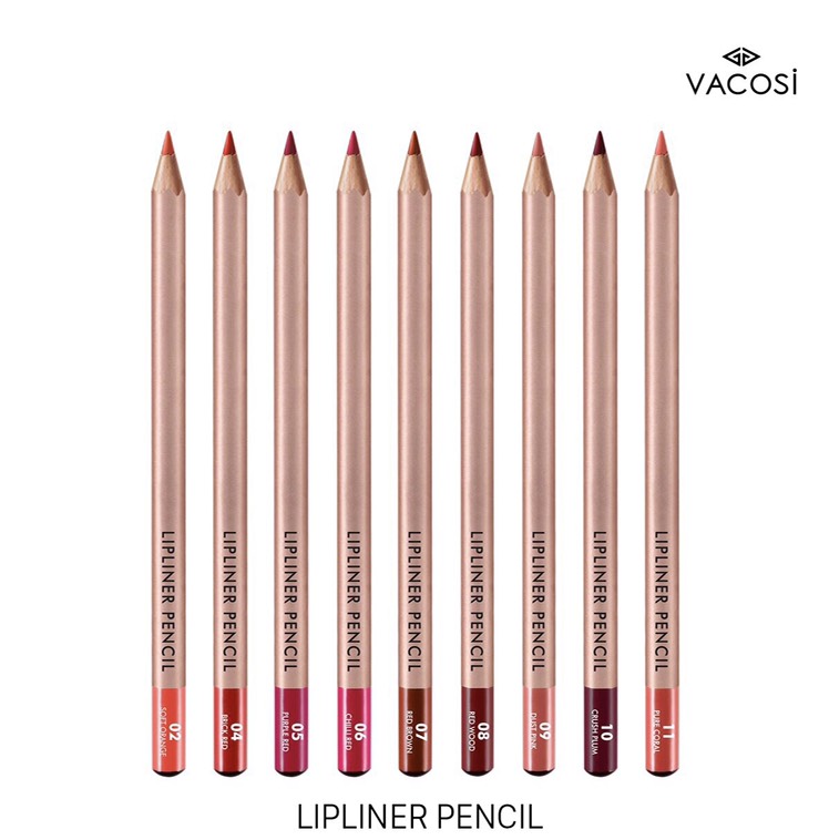 Chì kẻ môi VACOSI vừa có tác dụng định hình môi vừa giữ cho lớp son môi được bền màu.