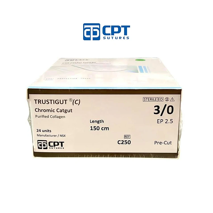 Chỉ phẫu thuật tự tiêu tan chậm CPT Trustigut (C) Chromic Catgut số 3/0 - C250