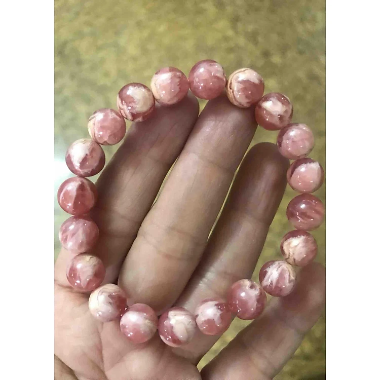 CHIẾC VÒNG TAY ĐÁ ĐÀO HOA TỰ NHIÊN HỒNG 8MM NỮ MỆNH HỎA MỆNH THỔ