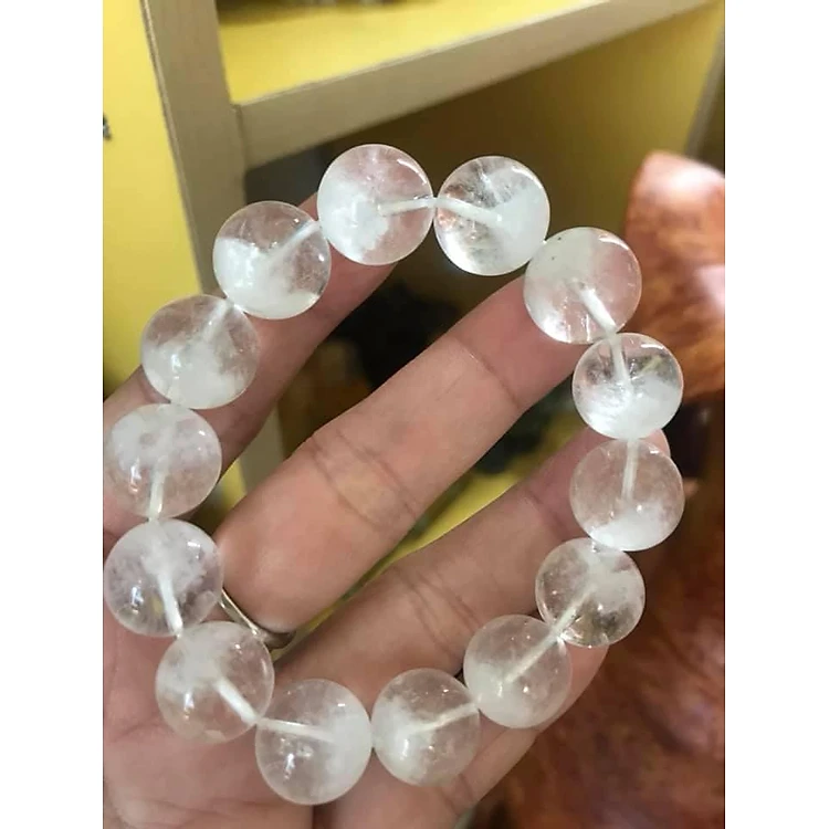 CHIẾC VÒNG THẠCH ANH ƯU LINH TRẮNG 14MM NAM MỆNH KIM THUỶ ĐÁ THIÊN NHIÊN