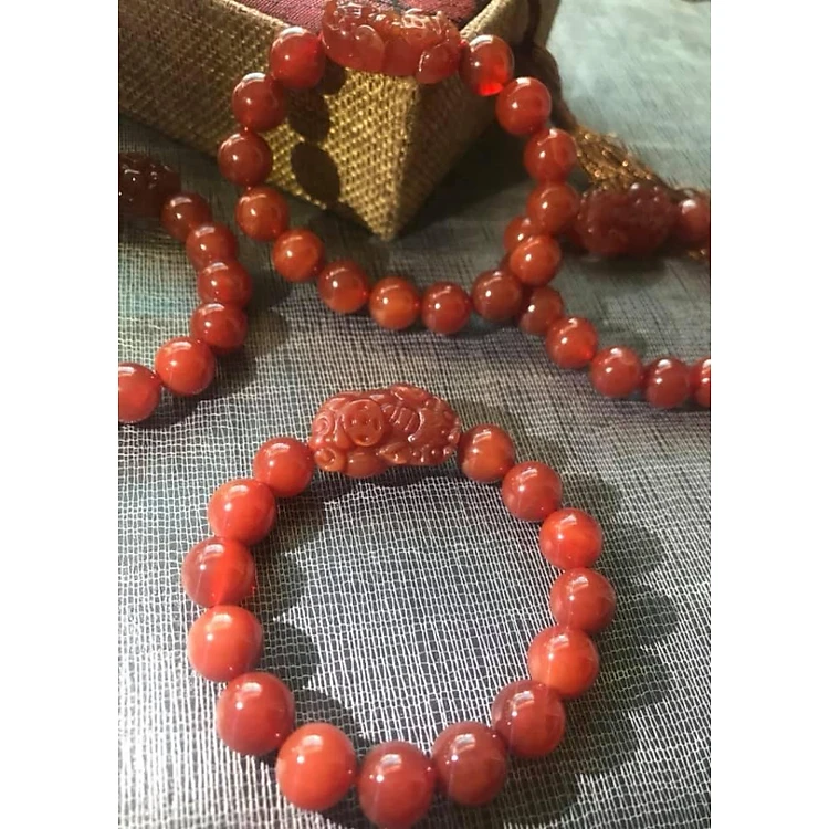 CHIẾC VÒNG TỲ HƯU HÚT TÀI ĐÁ MÃ NÃO ĐỎ 10mm ĐẬM ĐẸP NỮ MỆNH HOẢ THỔ ĐEO XINH