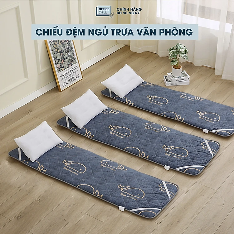 Chiếu Đệm Ngủ Văn Phòng OFFICE CHILL Tấm Đệm Lót Ngủ Chần Bông Microfiber Kháng Khuẩn Thoáng Khí Xếp Gọn