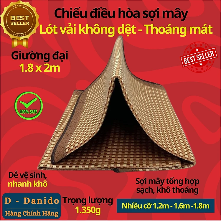 Chiếu điều hòa sợi mây tre đan tổng hợp lót vải không dệt cao cấp hàng xuất khẩu 2 mặt giá rẻ 1m2 1m6 1m8 D Danido