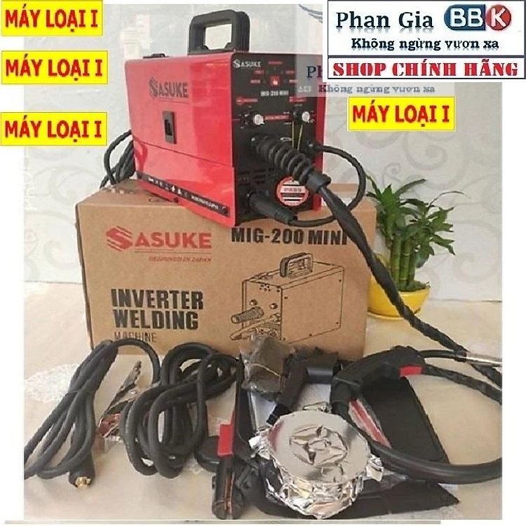 [chính hãƞg] Máy hàn 2 chức năng MIG + QUE SASUKE 200 - Tặng kèm cuộn dây hàn 1KG, Mô tơ 100% dây đồng, Bảo hành 1 năm