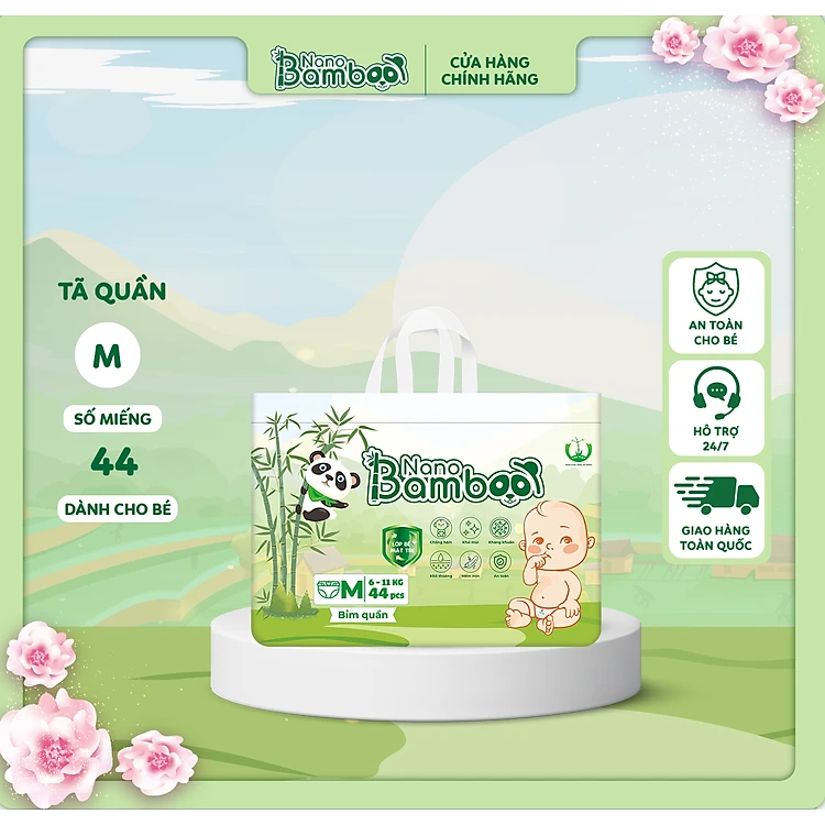 [Chính Hãng][Ảnh Thật] Tã/Bỉm Quần Nano Bamboo sợi tre thiên nhiên size M (6-11kg) 44 miếng
