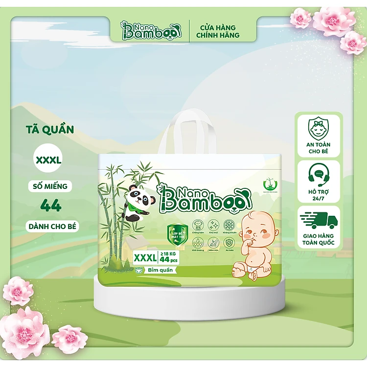 [Chính Hãng][Ảnh Thật] Tã/Bỉm Quần Nano Bamboo sợi tre thiên nhiên size XXXL (>18 kg) 44(+3) miềng