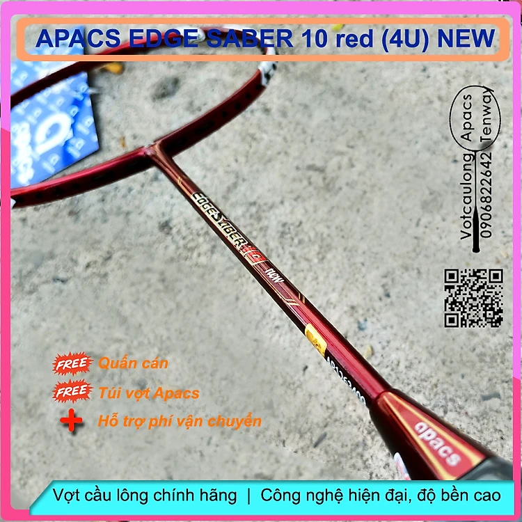 Chính hãng BH-[Vợt cầu lông Apacs Edge Saber 10 Red - 4U] | Đỏ mạnh mẽ, có thể đan 13kg, bền bỉ
