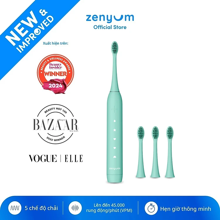 [Chính Hãng] Bộ Bàn Chải Đánh Răng Điện ZenyumSonic 2.0 & 3 Đầu Thay Thế - Xanh Mint - Công Nghệ Singapore