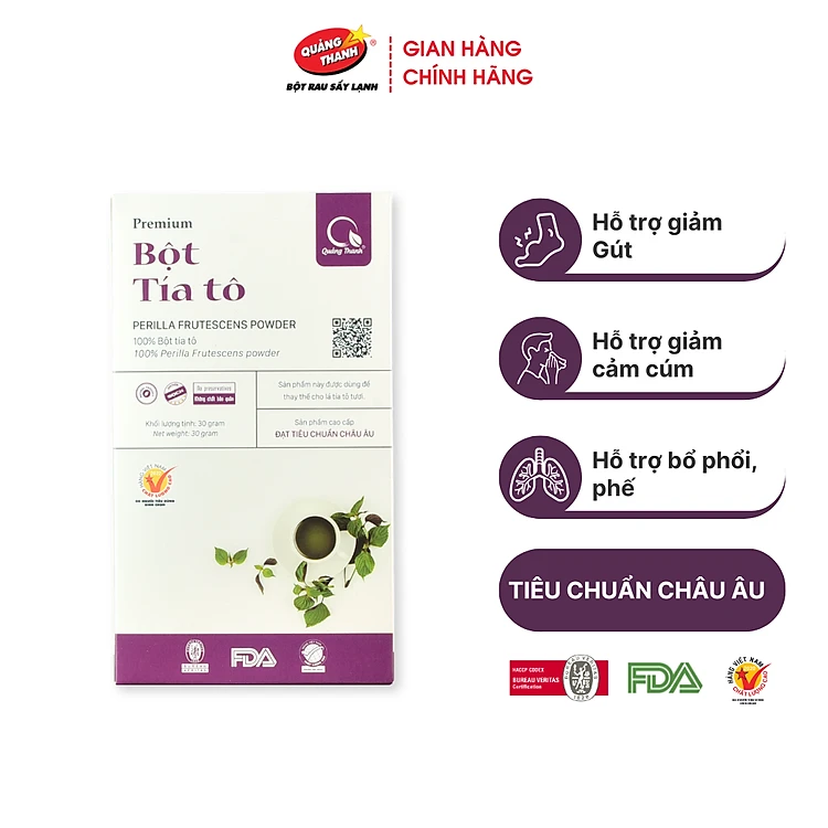 Bột Tía Tô Sấy Lạnh Nguyên Chất Quảng Thanh Hộp 30g - Giảm mụn, mờ thâm nám, giảm gút, giảm cảm cúm, làm đẹp