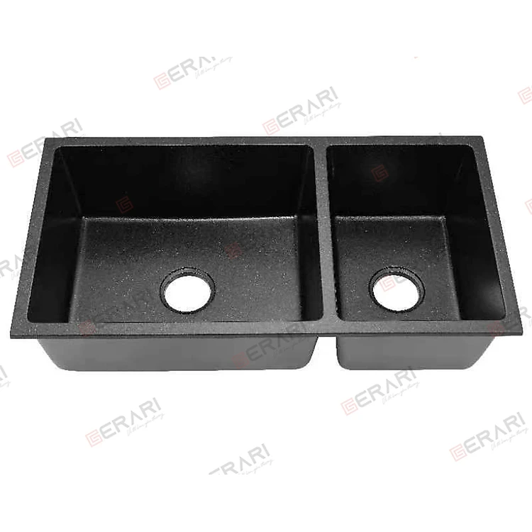 {CHÍNH HÃNG} Chậu rửa 2 hố lệch chất liệu đá Granit cao cấp. Phụ kiện đi kèm mã GC.MB9047 thương hiệu GERARI