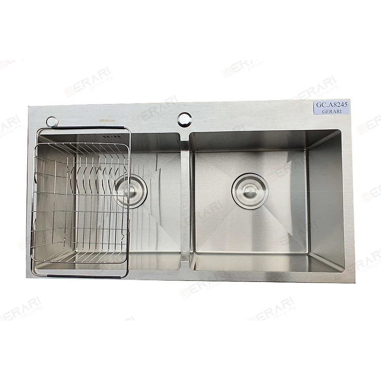 Chậu rửa bằng thép không gỉ (2 hố lệch phụ kiện đi kèm chât liệu Inox 304 cao cấp thương hiệu GERARI)