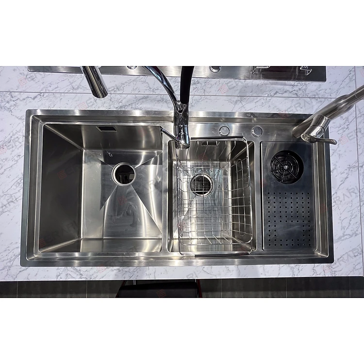 Chậu rửa 2 hố lệch phụ kiện đi kèm chât liệu Inox 304 cao cấp mã GC.JS10050 thương hiệu Gerari