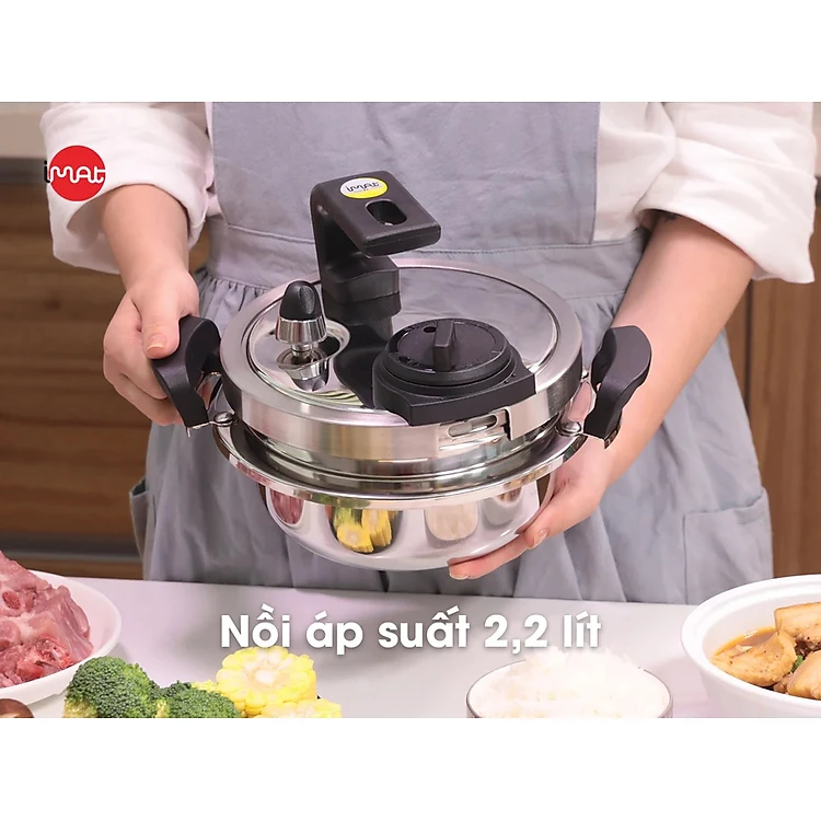 [ Chính hãng iMat ] Nồi áp suất đa năng iMat 2.2 lít, dùng bếp từ,hồng ngoại,bếp ga. Sử dụng sản phẩm nấu cơm, linh nhừ thực phẩm