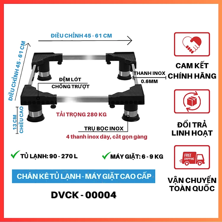 [Hàng Chính Hãng] Kệ Máy Giặt - Chân Kệ Tủ Lạnh Đa Năng Inox Cao Cấp Chống Rung Dakiosan