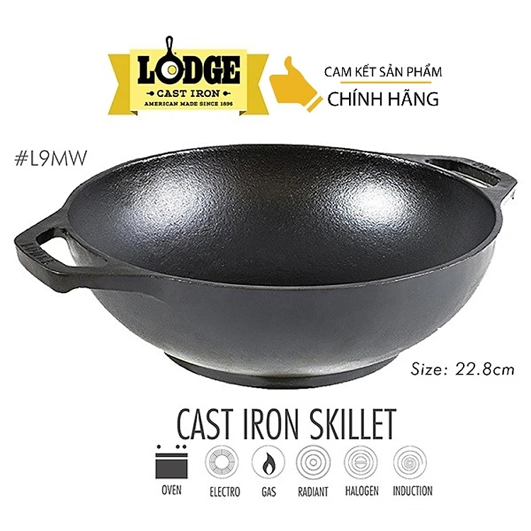 [Chính hãng LOGDE - MỸ] Chảo gang xào cỡ nhỏ Lodge hai tay cầm 23 cm - L9MW. Dùng chiên, xào, áp chảo, chiên cơm, nướng.