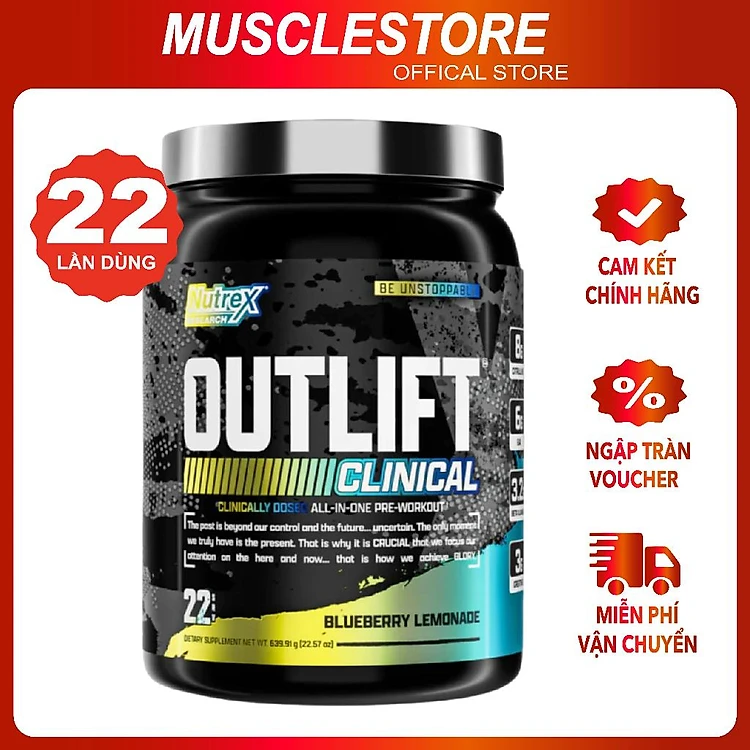 [Chính hãng] Nutrex Outlift Pre-Workout (22 liều),Tăng Sức Mạnh Sức Bền Trước Tập, Bổ Sung Citrulline, BCAA, Creatine