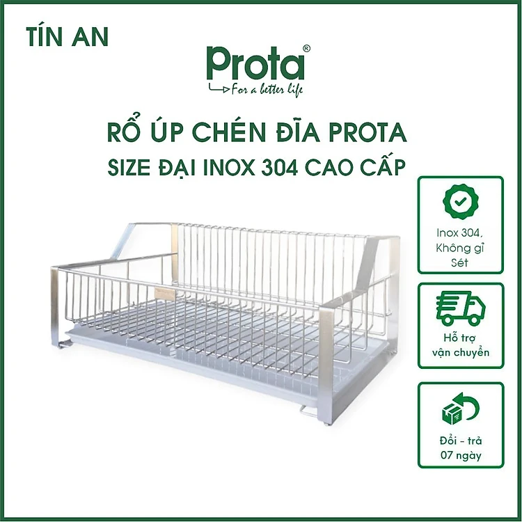 [CHÍNH HÃNG] Rổ úp bát đĩa inox 304 loại đạị Prota loại mới (Tặng kèm mâm hứng nước)- Bảo hành 36 tháng- Cam kết 1 đổi 1