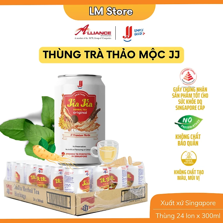 (Chính hãng) Thùng Trà Thảo Mộc Nguyên Vị Jia Jia JJ (24 Lon x 300ml) - Thương hiệu Singapore