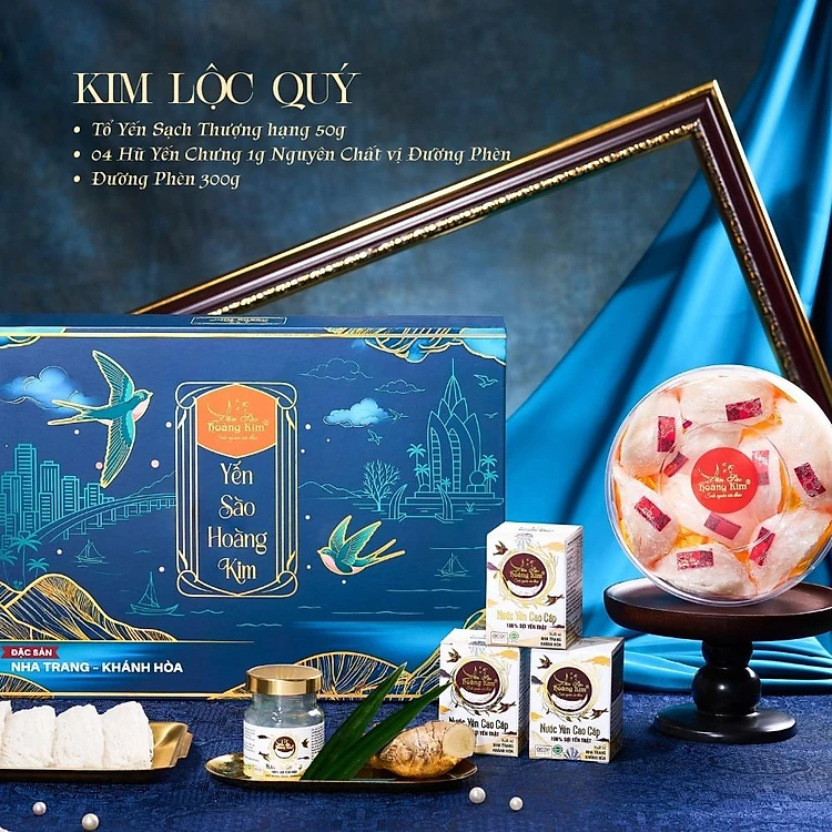 [CHÍNH HÃNG] Yến Sào Hoàng Kim - Hộp Quà Kim Lộc Quý (50g Tổ Yến Thượng Hạng & 4 Hũ Yến Chưng Đường Phèn) - Quà Biếu Cao Cấp, Sang Trọng
