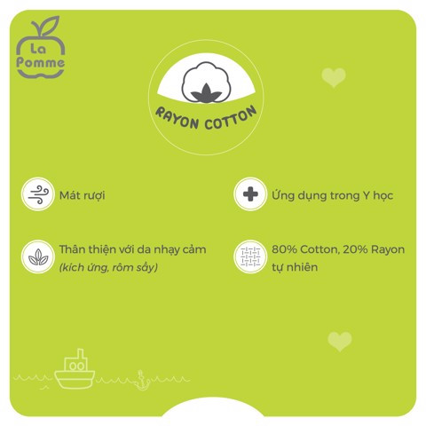 Chất liệu vải tơ sinh học từ cây gỗ Sồi, vải cotton tự nhiên và vải Cotton 100% hữu cơ, giúp quần áo La Pomme có khả năng thoáng khí - hút ẩm xuất sắc, kháng khuẩn - kháng nấm vượt trội; hạn chế tối đa sự phát triển của những vi khuẩn gây mùi khó chịu. Đặc biệt, không gây kích ứng da; do đó đặc biệt phù hợp với bé có cơ địa hay dị ứng.