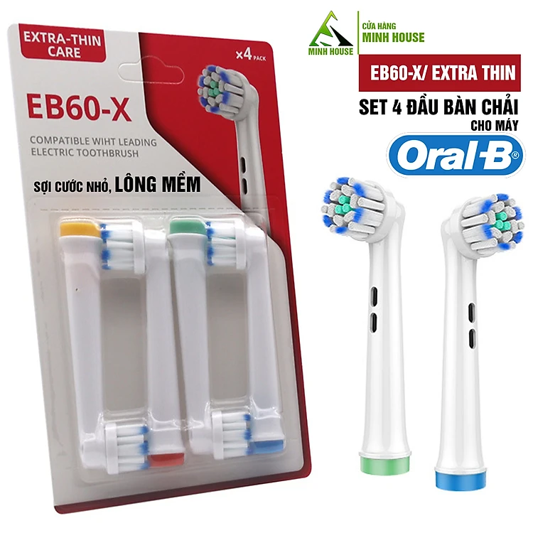 Cho máy Oral B, EB60-X Extra Thin Care Lông mềm, set bộ 4 đầu bàn chải đánh răng điện thay thế Minh House